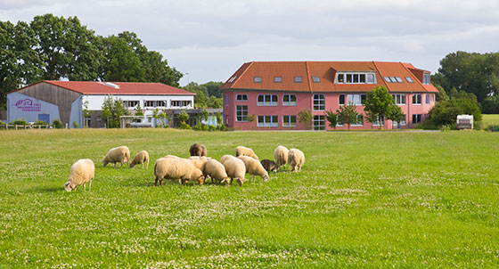 Unsere Schule, im ländlichen Münsterland zwischen Wäldern und weiten Feldern gelegen, fällt zunächst durch die farbenfrohe Gestaltung der vielen einzelnen Gebäudekomplexe auf: Unter- und Mittelstufengebäude, Eurythmietrakt, Werkstattpavillon, Offene Ganztagsschule, Mensa, Oberstufengebäude, Sporthalle – und dazwischen viel grüner Freiraum für Begegnungen, zum Spielen und Schlendern.