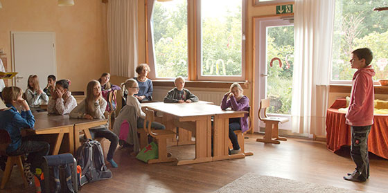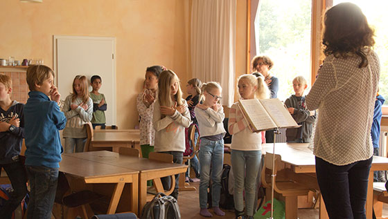Innerhalb des Hauptunterrichtes sprechen die Schüler*innen täglich bis zur achten Klasse ihren Zeugnisspruch. Dieser Spruch soll ihnen Anregung und eine Art Leitspruch für ein Jahr sein.